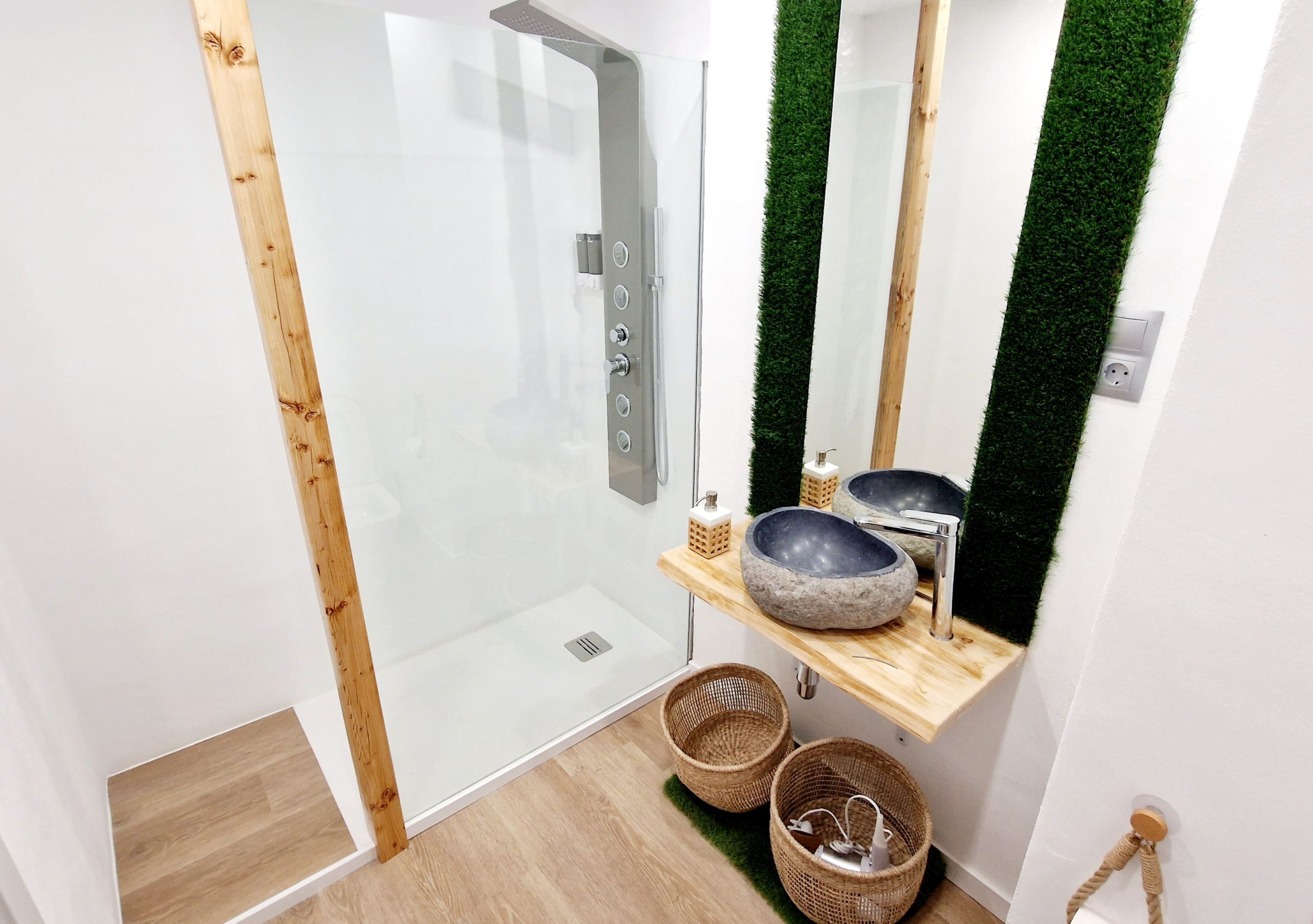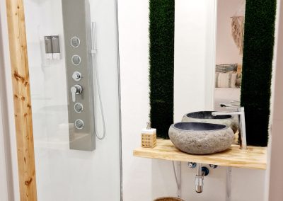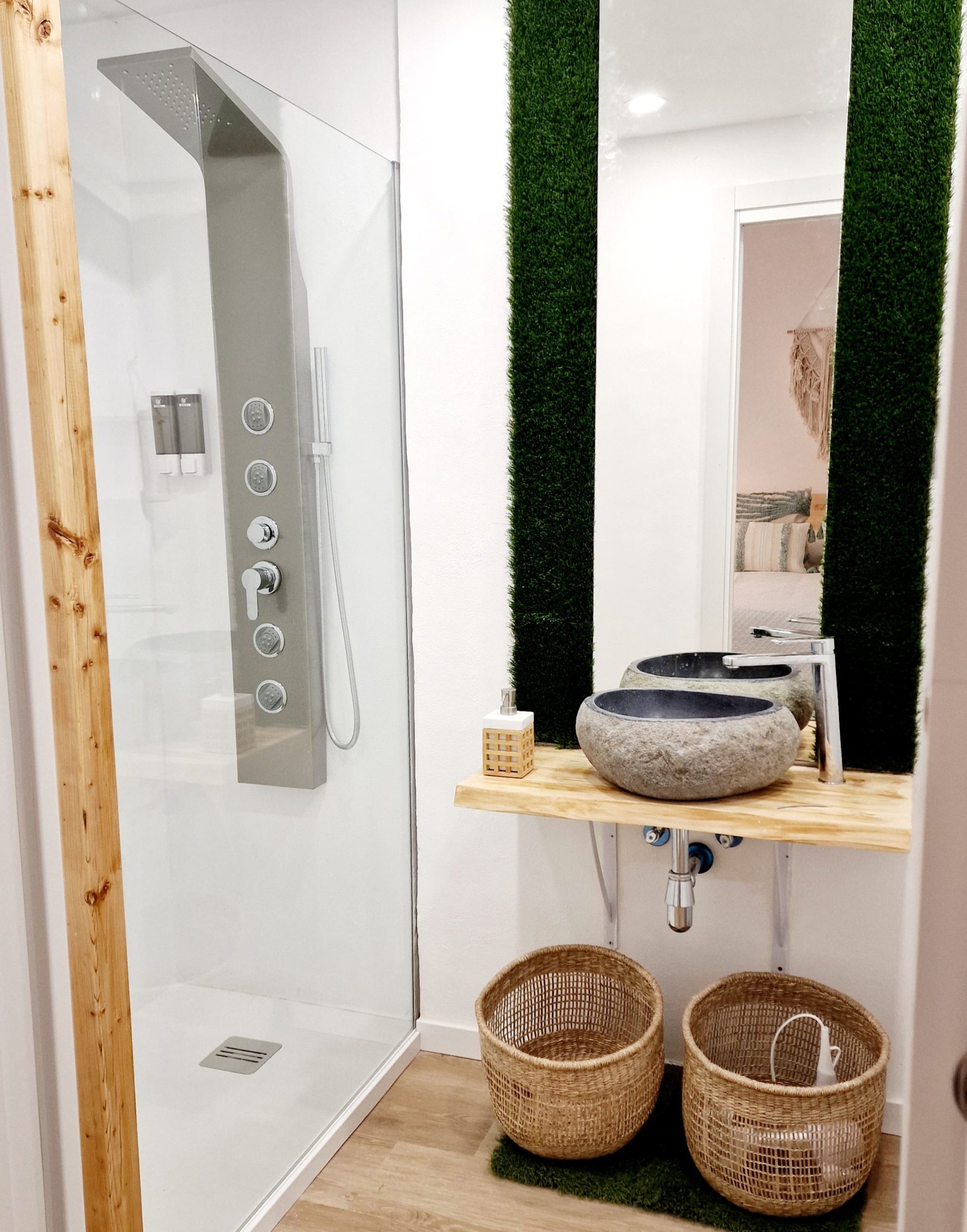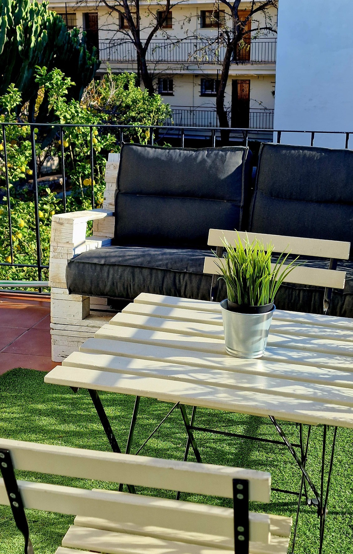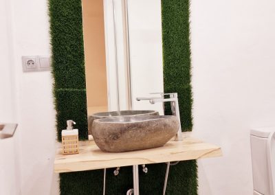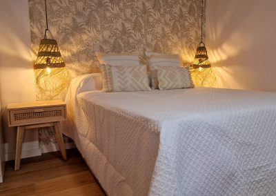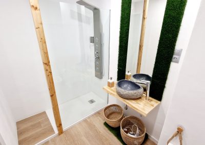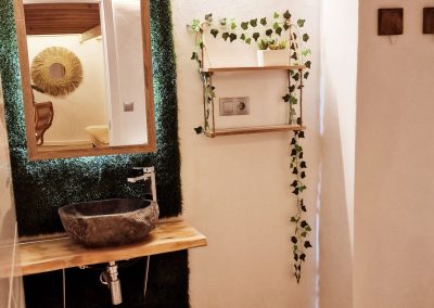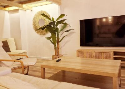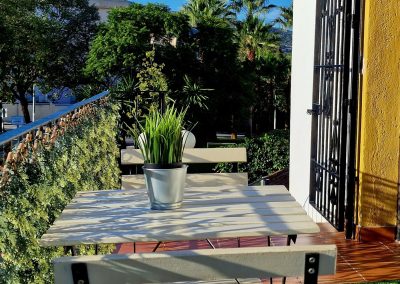 Preciosa y elegante suite de gran amplitud recién reformada con una amplia cocina y un acogedor baño completo con una espaciosa y cómoda ducha con hidromasaje. Dispone en el exterior de mobiliario de jardín con césped artificial donde relajarse, desayunar o fumar en un agradable recinto cerrado para los huéspedes.