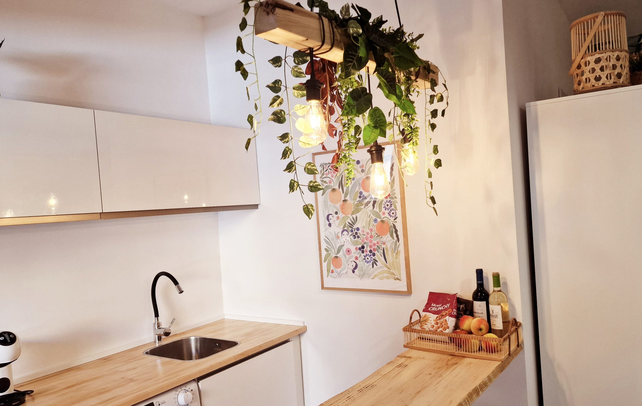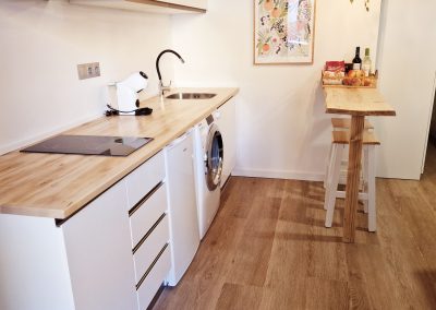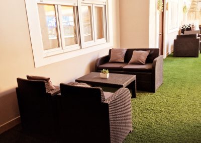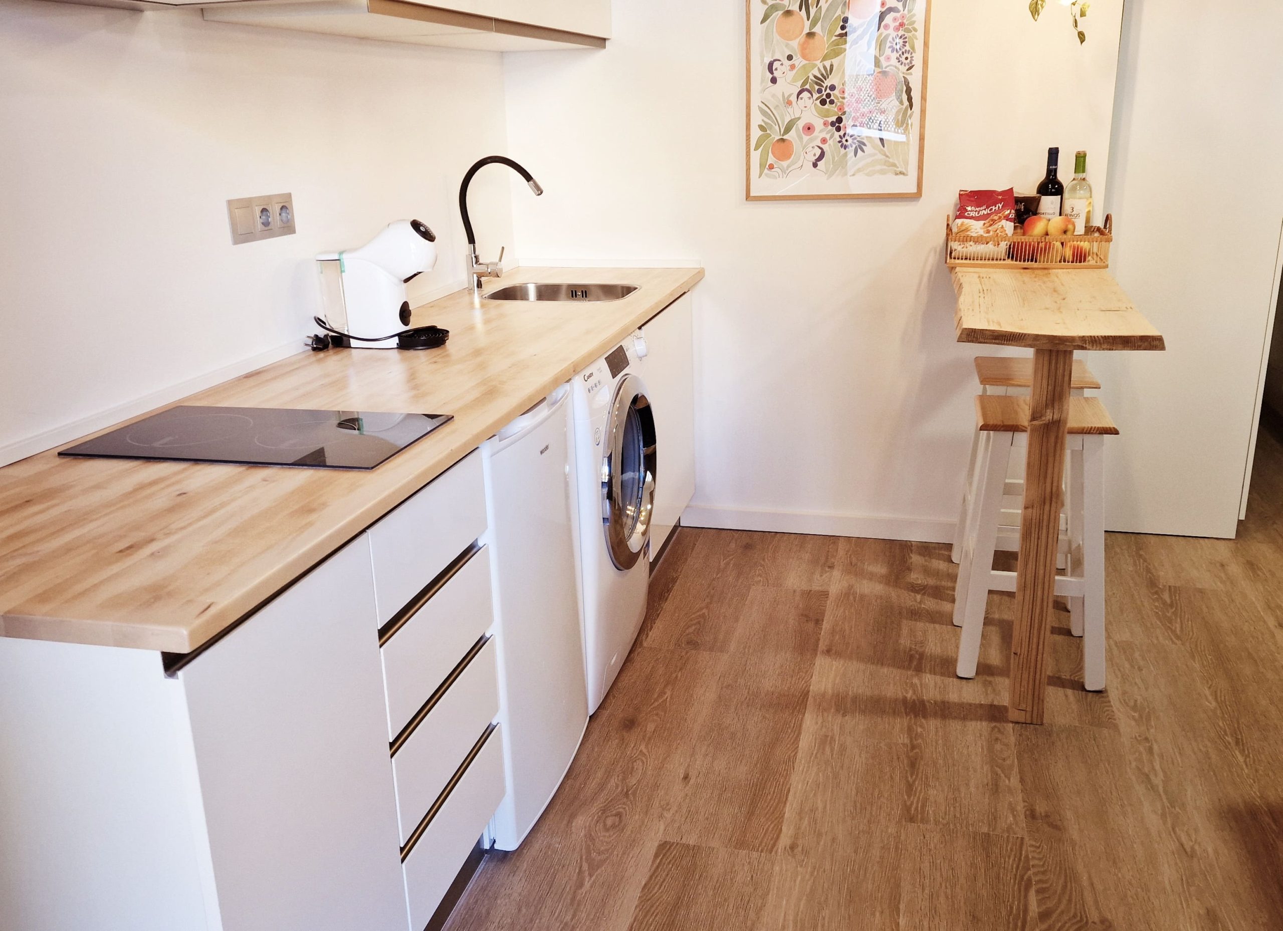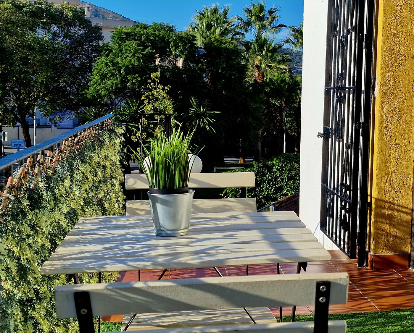 Preciosa y elegante suite de gran amplitud recién reformada con una amplia cocina y un acogedor baño completo con una espaciosa y cómoda ducha con hidromasaje. Dispone en el exterior de mobiliario de jardín con césped artificial donde relajarse, desayunar o fumar en un agradable recinto cerrado para los huéspedes.