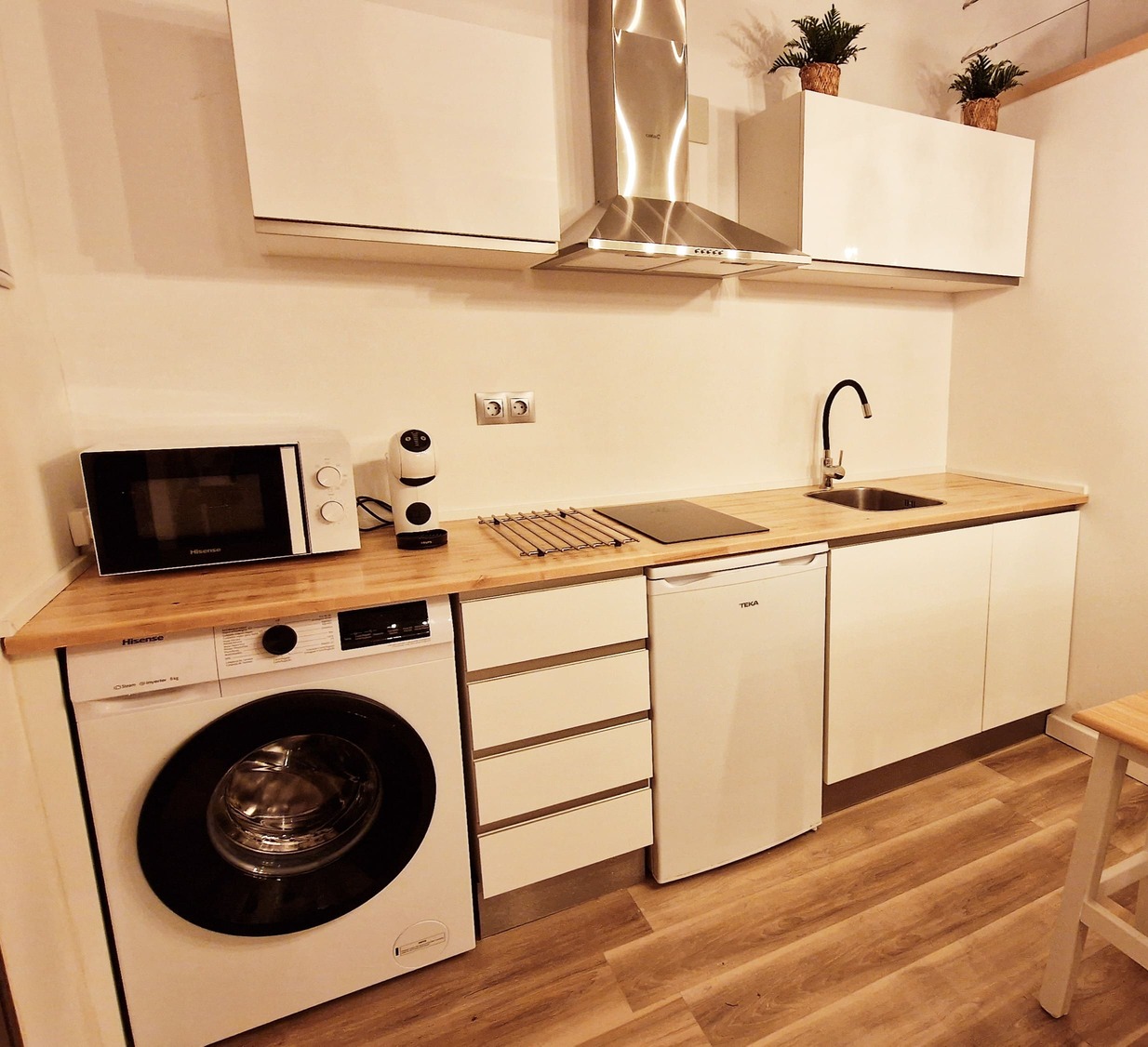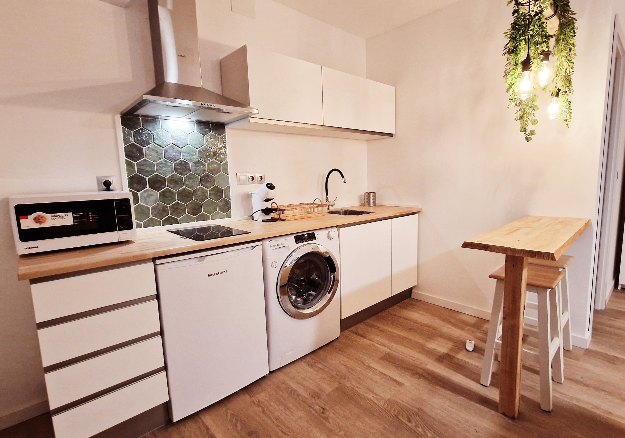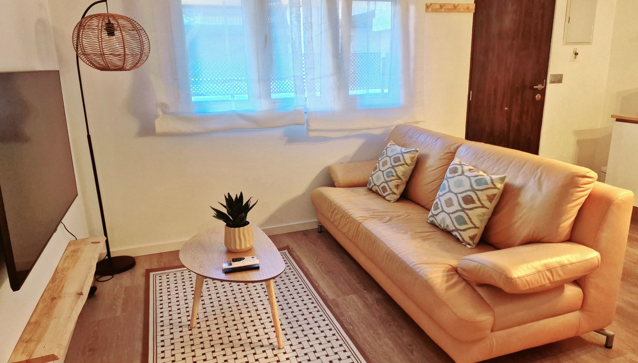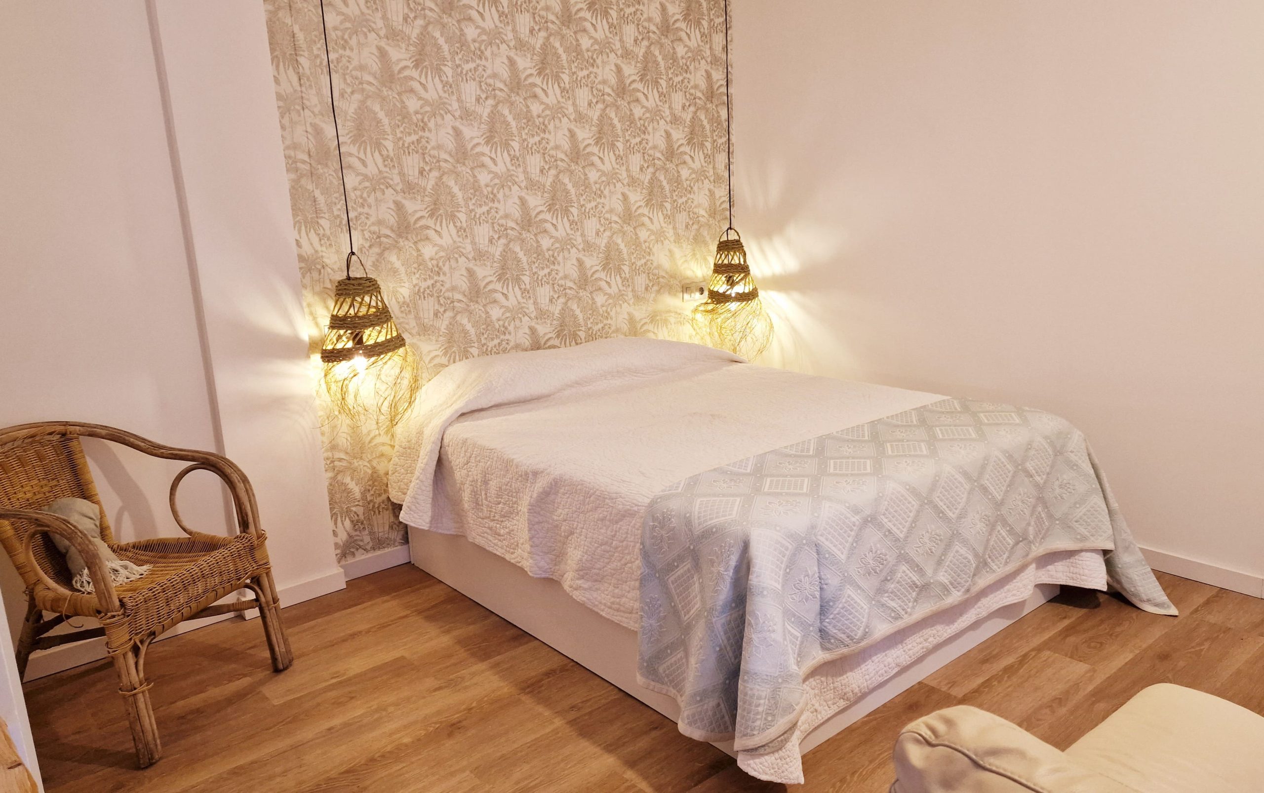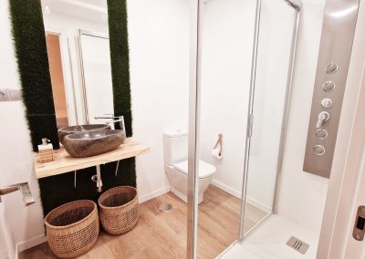 Preciosa y elegante suite de gran amplitud recién reformada con una amplia cocina y un acogedor baño completo con una espaciosa y cómoda ducha con hidromasaje. Dispone en el exterior de mobiliario de jardín con césped artificial donde relajarse, desayunar o fumar en un agradable recinto cerrado para los huéspedes. Los fines de semana puede haber ruido de bares y discotecas, a la mayoría de huéspedes no les molesta, pero ruego lo tengan en cuenta antes de reservar si tienen el sueño ligero.